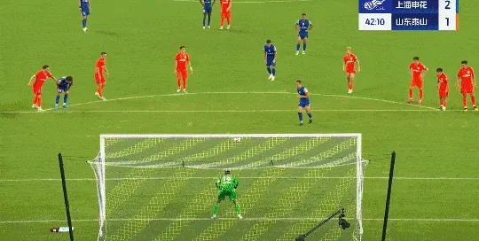 吴曦主罚点球,王大雷扑对方向皮球依旧进网,申花2-1